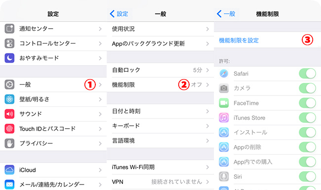 「機能制限」を設定する方法